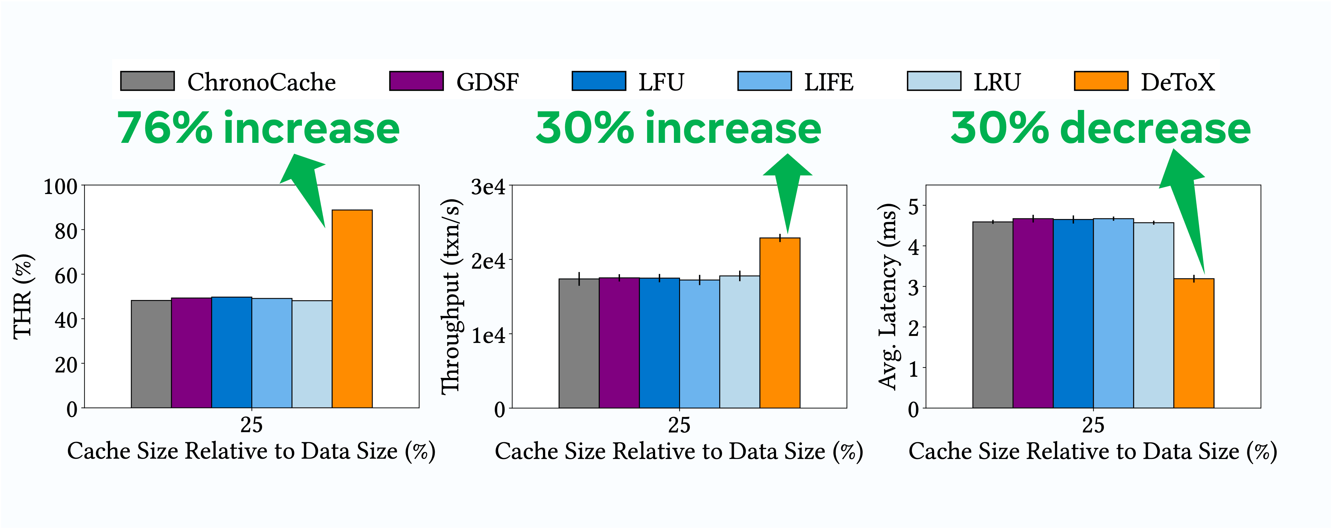 DeToX optimizes caching for transactions by storing the groups of keys that are accessed together. There is a principled reason for its performance: grouping enables DeToX to maximize for transactional hit rate. Please check out our OSDI paper for more details. Happy caching!